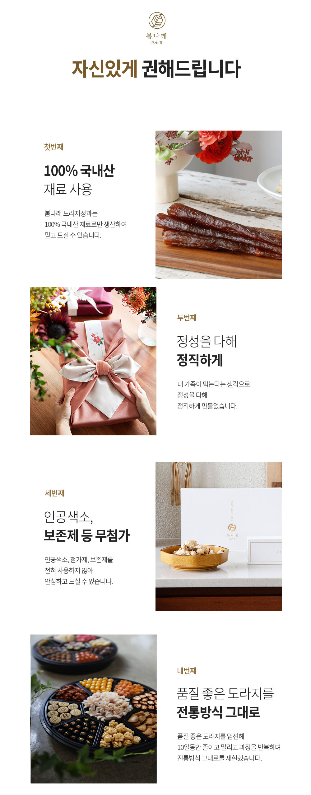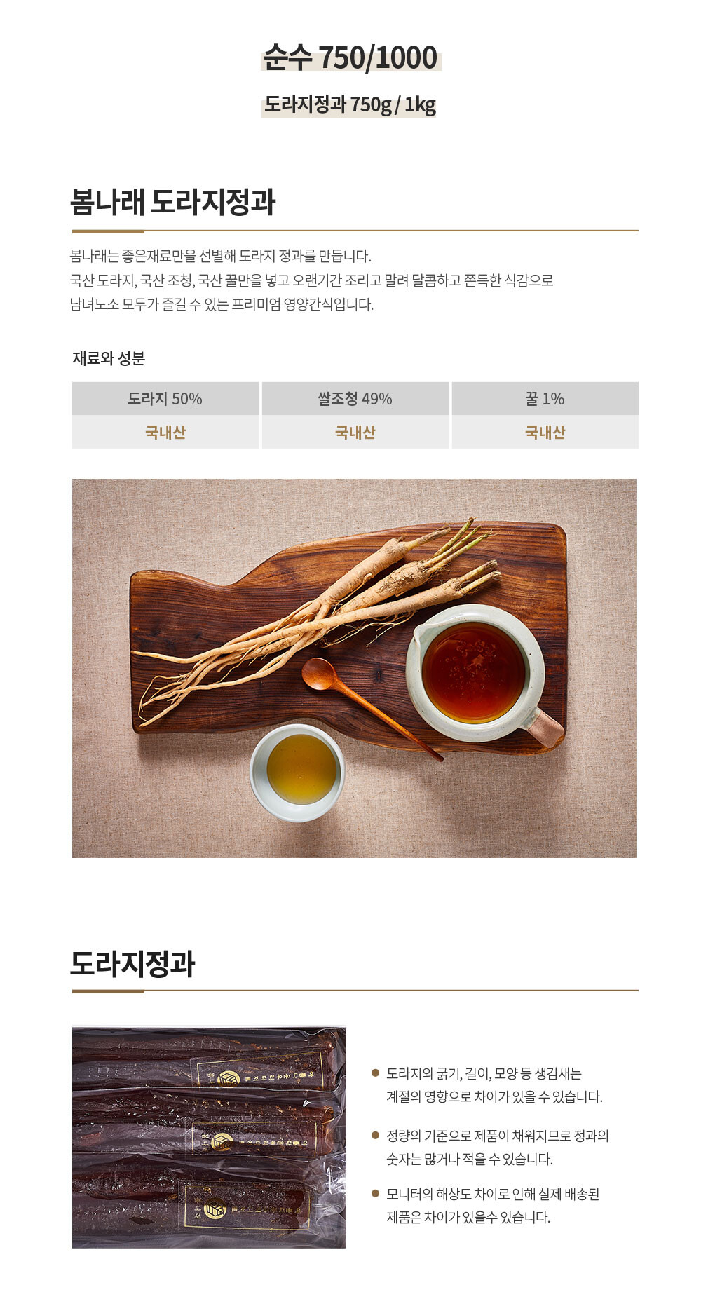 *구성: 국내산 도라지정과750g/1kg중 택1+콩가루(중국산)+맛보기+안내카드+쇼핑백